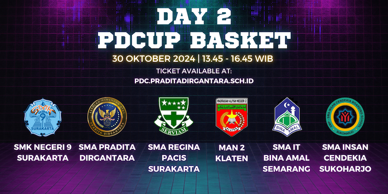 SMA Pradita Dirgantara Jl. Cendrawasih No. 4, Tanjungsari, Ngesrep, Kec. Ngemplak, Kabupaten Boyolali, Jawa Tengah, Boyolali, Jawa Tengah, IndonesiaPDCup Basketball 2024 adalah event rutin tahunan di SMA Pradita Dirgantara. PDCup Basket menjadi ajang unjuk diri bagi bibit-bibit unggul pemain basket se-Jawa Tengah. Tahun ini, persaingan akan semakin sengit, para jagoan memerlukan dukungan dan support dari kalian. Tunggu apalagi? Dapatkan tiketnya sekarang! Sebelum memesan tiket, harap perhatikan ketentuan berikut: Satu tiket berlaku untuk menonton […]